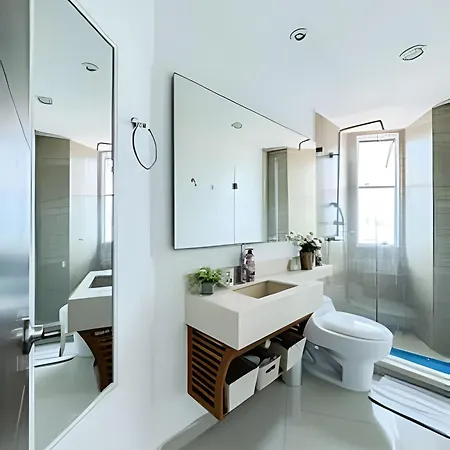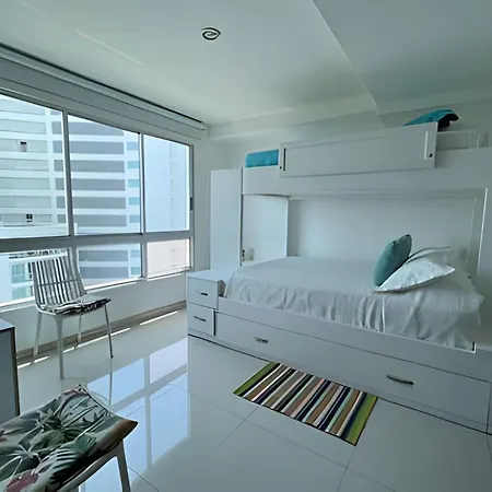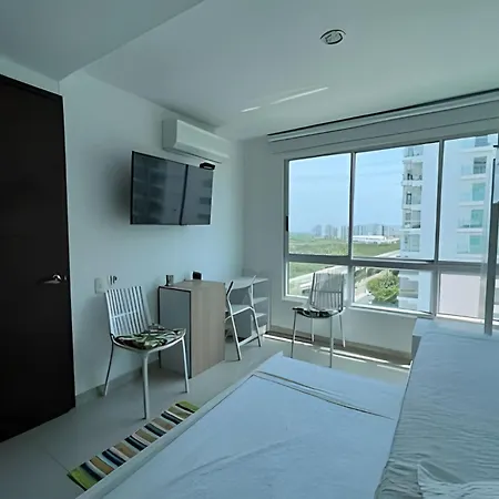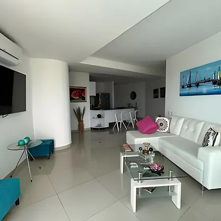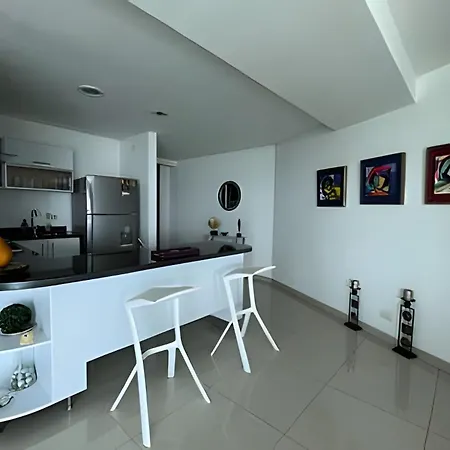 Este apartamento, que ofrece una ubicación frente a la playa en Cartagena, está cerca del Convento La Popa de la Galera. Está a una distancia de 7 km de la Casa de Rafael Nuñez, y también está cerca de Kitesurf Colombia.